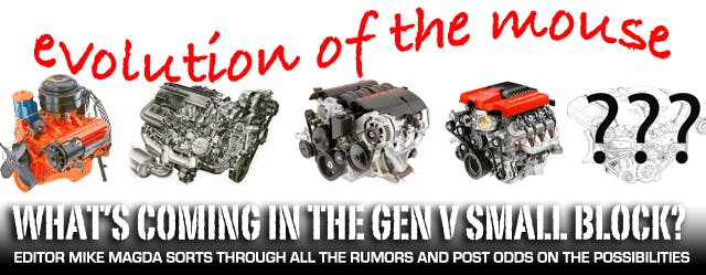 In an attempt to unravel the Gen V hysteria, I will handicap the leading theories, rumors, facts and possibilities. I do have a little experience in guessing GM’s next move in building an all-new engine family. Serving as editor of Chevy High Performance magazine at the legendary Petersen Publishing Co. in 1995, my staff and I painstakingly pursued information about the upcoming Gen III engine that would debut in the C5 Corvette. We had sources at the Bowling Green plant who fed us consistent but tiny tips. Then a reader sent me random photos of cylinder heads and manifolds. Turns out a friend of this reader worked in a 1-hour photolab, and an engineer working on the engine brought in the photos of the Gen III to be duplicated, bragging that they were of the “new Corvette.”