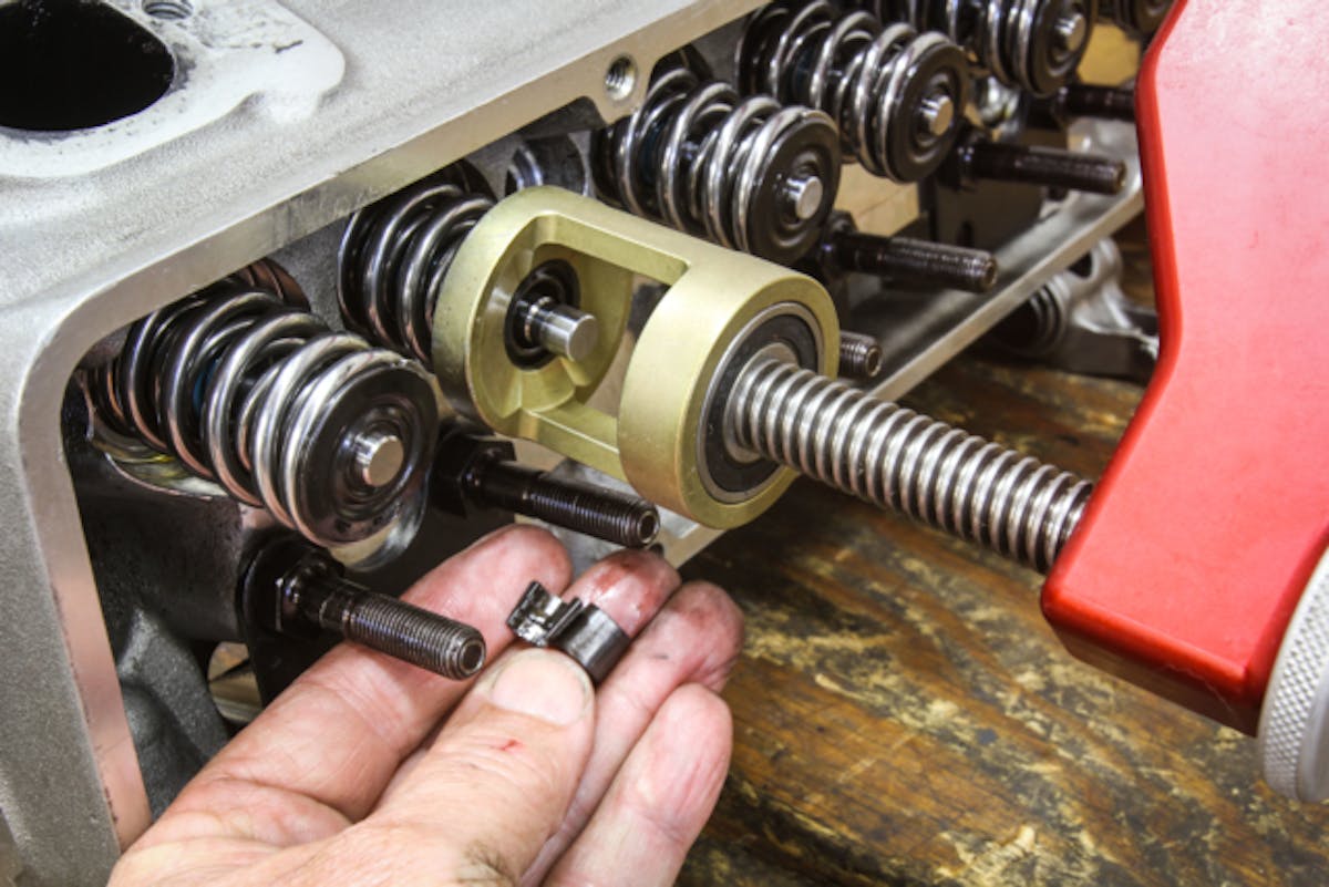 A quick way to determine if the springs have suffered damage is to record the seat and open pressures on each spring when new and then after a dyno session or two it’s a good idea to check the loads again. With the engine in the car, there are several lever tools that do a decent job of compressing the spring to check the installed load. When the engine is apart, a bench spring checker can easily perform this task. Most machine shops have one of these tools but they are not all that expensive if you plan on performing race engine maintenance.
