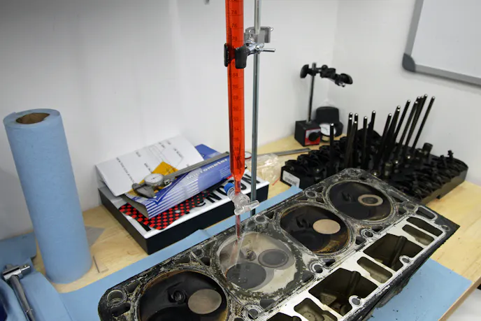 When you’re trying to measure the volume of your combustion chambers, there are a lot of styles of kits available. By far our favorite style is the laboratory burette style, like Proform P/N: 66831. While this might look imposing at first (I mean, the burette is almost three feet tall), the amount of resolution available and the lack of required math make this style a no-brainer in our book.