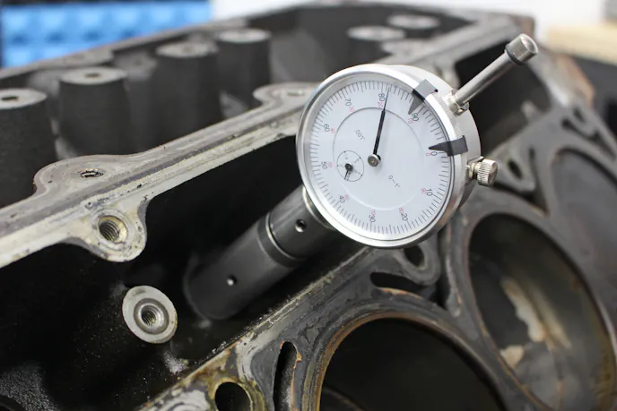 This not only allows for easy finding of Top Dead Center, but also for measuring actual stroke and for measuring piston deck height. The built-in magnets make for a solid, stable mount on the deck of the block (assuming, of course, you have an iron block), the stance accommodates up to a 4.500-inch bore, and the three dial indicator locations allow you to work around domes or dishes in the piston crown.