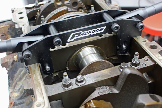 The Proform LS Main Cap Removal Tool (P/N: 67485) is one of those devices that you look at and think, “How has no one thought of this before?” The LS line of engines has main caps with “wings” on them, which lend themselves nicely to being picked up and plucked out of the block like a mother picking up her child under the arms.