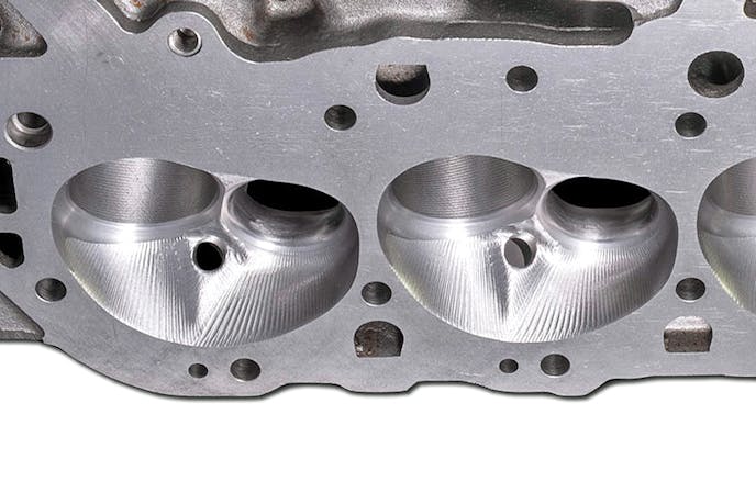 All of those features combine for some serious airflow, with peak intake flow numbers of 432 cfm at .900-inch of valve lift and 316 cfm on the exhaust side. “These heads are perfect for marine and pulling applications, combining the durability of cast iron with the power of CNC-machined ports,” says World’s Jack McInnis. “They also work well for big-cube, high-RPM bracket racing engines.”