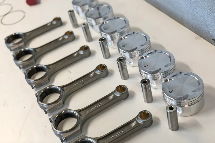 The OEM crankshaft rides on a set of ACL race bearings in the mains as well as in the CP-Carrillo Bullet-Series connecting rods. Made from forged 4330M steel, the U.S.-made Bullet rods come outfitted with H-11 tool-steel fasteners and a design that maximizes strength while minimizing weight.