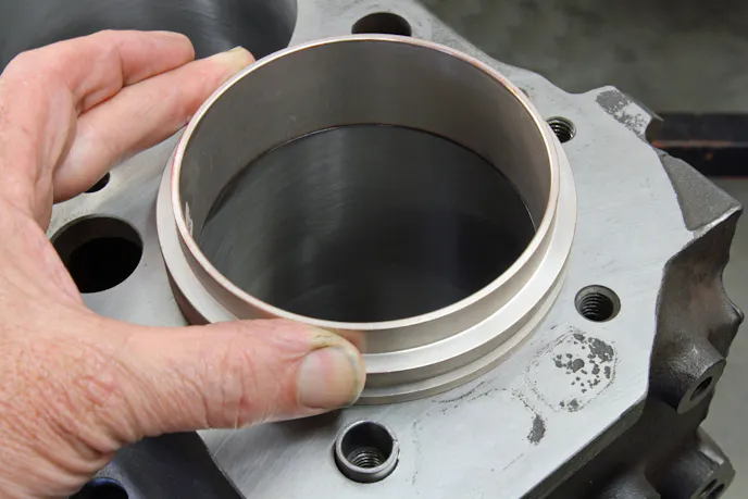 “A customer brought this in yesterday. He claimed we machined the cylinder wall clearance too tight and that broke his piston. I knew that he had assembled the engine, so I asked him ‘What did you set the top ring end gap at? He said he set it at 0.018-inch,” said the shop owner. “That’s when I told him these were hypereutectic pistons that needed much more end gap. You should have set them at more like 0.028-inch. So when the rings got up to temperature, they stuck in the bore and that’s what broke the top right off the piston.”