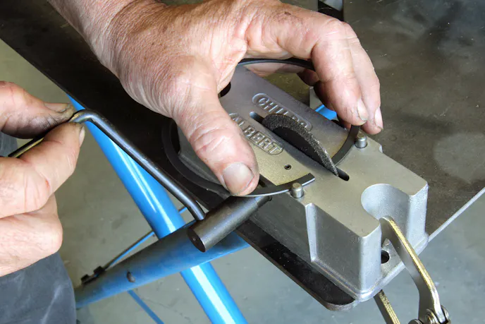 As mentioned, working up to the final end gap for each ring is the best approach. Using the hand-grinder, it’s best to keep track of the number of revolutions, as that will help dial in the remaining rings to be filed. Another important point for manual machines is to always turn the handle counterclockwise since that will grind the ring inward instead of outward. This prevents potentially splitting or peeling the inlaid moly in the ring face.