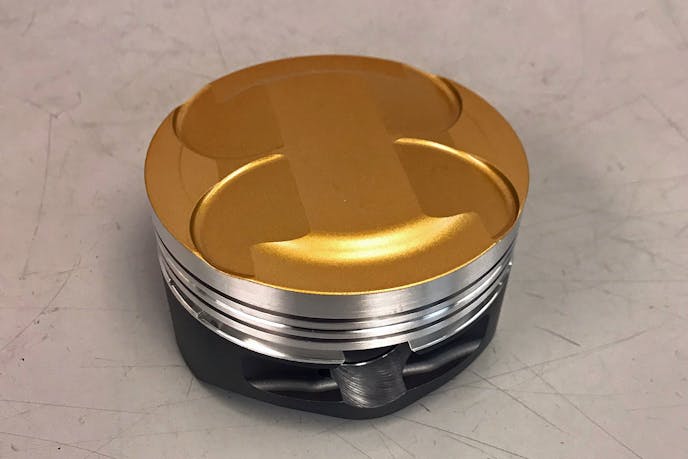 For the custom-design piston, also branded under the Powerstorm name, Livernois starts with a 2618 forging with a final bore size of 3.650 inches. Since the specs call for a relatively tight piston to wall clearance of .003 inch, the actual diameter of the pistons come in at 3.647 inches in diameter. They then incorporate a 1.5mm top ring groove, 1.5mm second ring groove, and 3.0mm oil ring groove, along with a 7cc dome at the top of the piston, to bring compression up to about 11.5:1