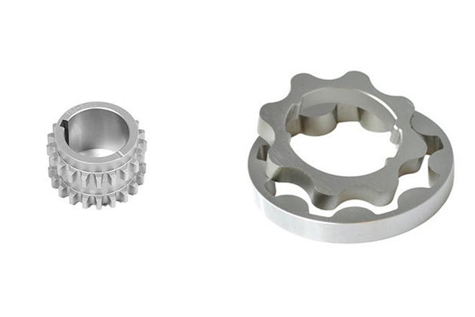 On the Coyotes, one of the known shortcomings of the OEM design is the powdered-metal oil pump gears installed at the factory. When supercharging a Coyote, or really, pushing one significantly over the OEM performance envelope at all, billet oil pump gears are a necessity.