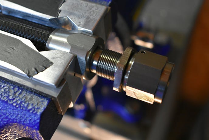 Fuel line sizing can be slightly confusing since it’s not something the average person ever thinks about being a limiting factor in making power. Luckily, DeatschWerks offers a hose-size guide for different fuels. While AN-8 hose is listed as capable of 1,400 horsepower on E85, we didn’t want to impart any restrictions on fuel flow since our pump setup is capable of more than 1,400 horsepower of flow.