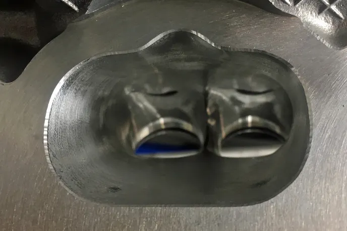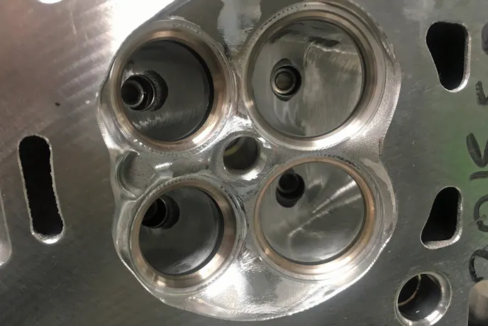 In addition to enlarging and optimizing the intake and exhaust ports via CNC machining, the combustion chamber and valve areas also get serious attention from the 5-axis CNC. “Many hours of testing have gone into the development process, ensuring that we were able to perfect the valve job on these heads,” says Gabriel. “The valve seats are cut on our Newen Contour-BB machine, which allows for exacting tolerances and concentricity. The valve seats are then hand-blended with the CNC program, to ensure each individual valve seat is perfect.”