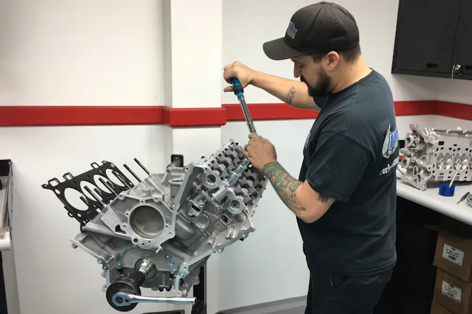 In the last installment of the Boosted Coyote engine build, we saw Livernois Motorsports and Engineering’s ace engine builder Fonzie Novelo take our OEM block – which was the only salvageable part of the original short-block – and create an amazing Race Series short-block capable of handling serious boost and 1,000-plus horsepower.