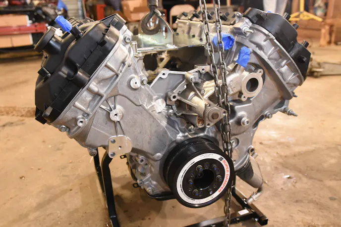 Once the crate arrived from Livernois, Ivan Korda, the project’s owner, was quick to get to work and get the engine back between the framerails. However, there were still a few new bits and pieces that needed to be bolted onto the engine.