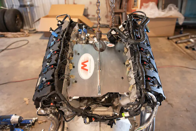 Now, it’s time to put all the shiny new parts to the test, to see what they are truly capable of on the dyno. First, we have to get the new long-block into the car. Thankfully, since there are no exterior physical differences between the OEM engine and the aftermarket powerhouse from Livernois, installation should be a simple replacement.