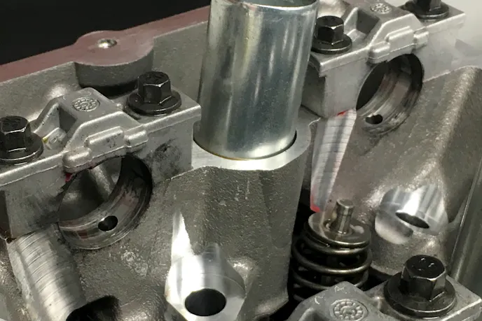 Ricketts walked us through the teardown and inspection process, with some of the engine’s issues obvious without spinning a single wrench. “Upon first inspection, before teardown began, it became obvious to us that some items were incorrect. Visually, it was apparent that along this engine’s past life, one cylinder head’s cam caps had been installed backwards,” Ricketts says. “While they happened to be on the correlating cam towers, they were facing the wrong way on the cylinder head.”