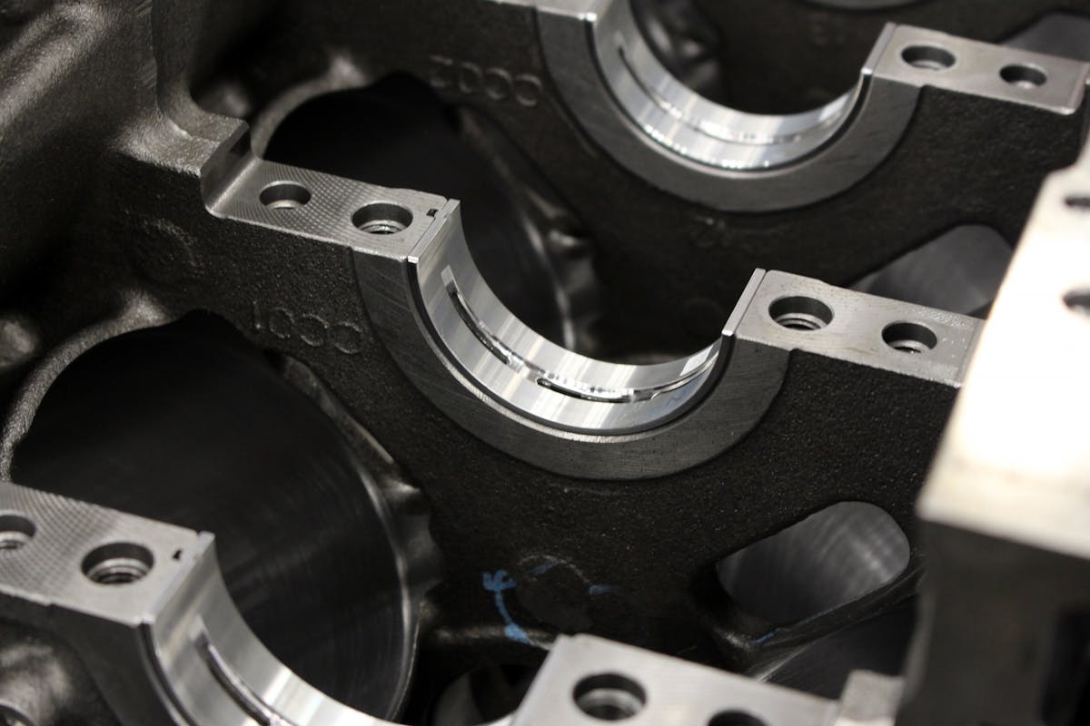 While we upgraded to Energy Manufacturing's billet main caps, we retained the OEM main bearings, as they should be capable of handling what we throw at it.