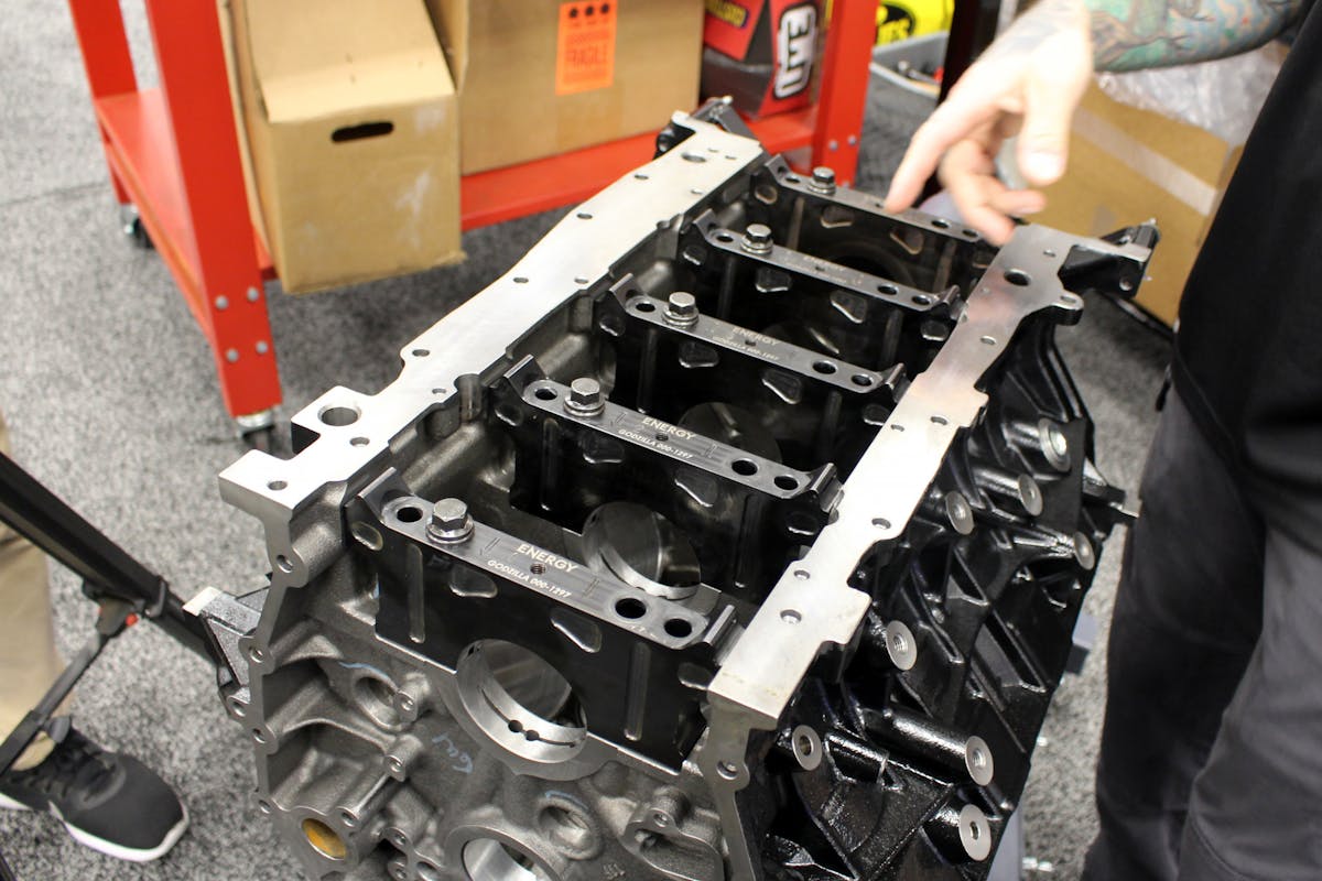 As a base, the OEM Godzilla block is a great core upon which to build. It’s a cast-iron block with a semi-closed deck design offering significant support to the cylinders, as cast. The engineers at Ford have machined slots in the deck in between each cylinder to enhance coolant flow and prevent hot spots, while on the underside, the main caps feature a robust six-fastener design (four vertical bolts and two side bolts per cap).