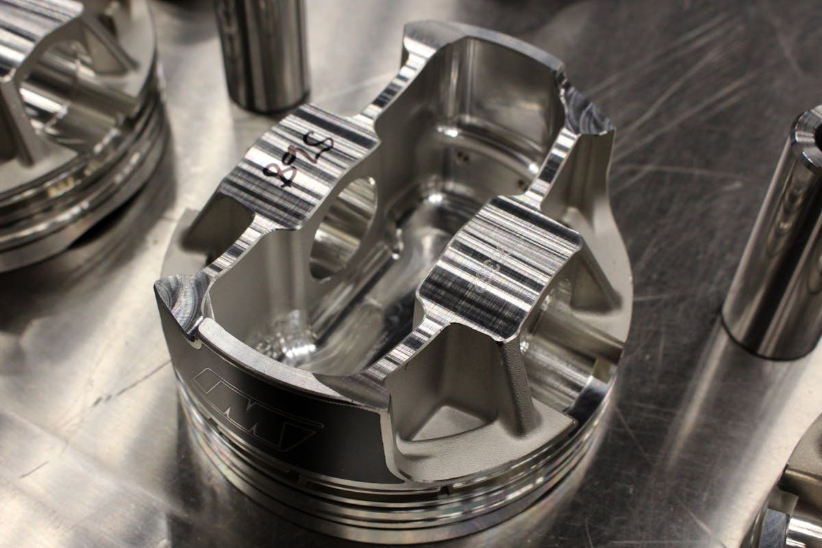 The Wiseco pistons offer an anti-friction skirt coating, an .043-inch/.043-inch/3.0mm ring pack for efficency. We opted for the 22cc reverse dome to keep compression around the stock 10.5:1