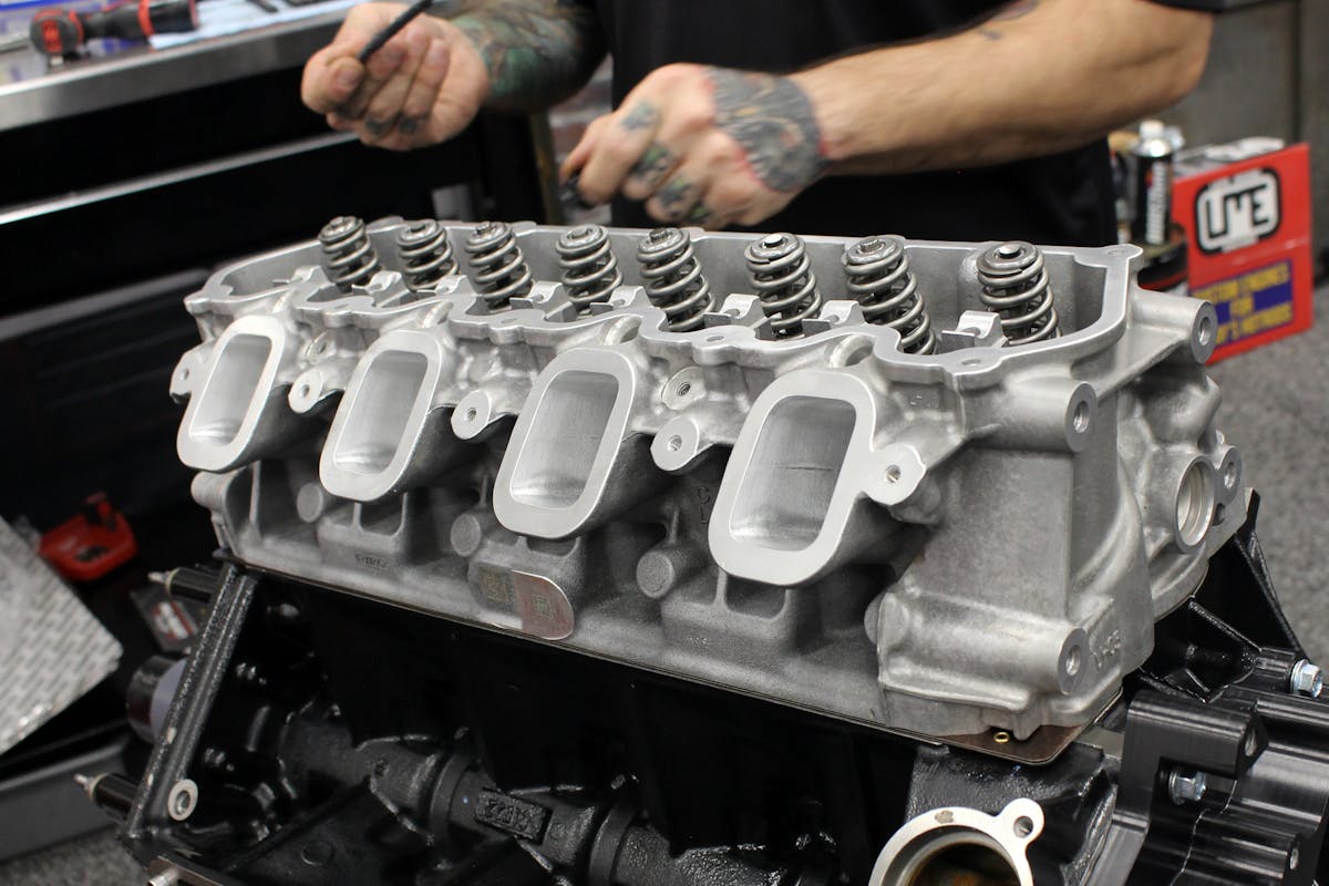 LME only lightly skimmed the intake and exhaust ports, save for really taking down the pushrod bump in the port from the factory. The valves and chambers were left stock, with the factory 2.170-inch intake and 1.660-inch exhaust valves.