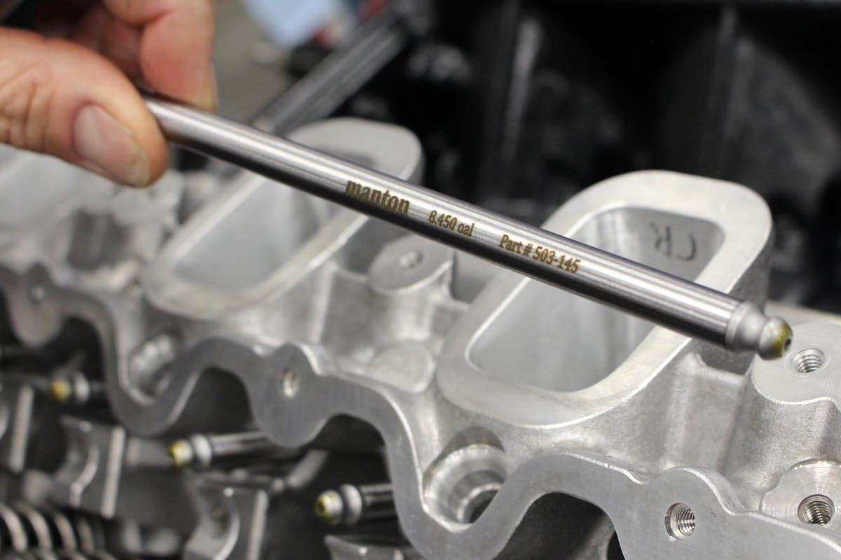To translate the cam lobes’ shape into vertical motion, a set of Johnson hydraulic roller tie-bar lifters were used. These feature .095 inch of travel and a body diameter of .842 inch. Riding on top of those lifters are a set of Manton’s 3/8-inch Series-5 8.450-inch pushrods. Made from seamless 4130 chromoly tubing with a .145-inch wall-thickness, these pushrods will handle anything this combination can throw at it with minimal deflection.