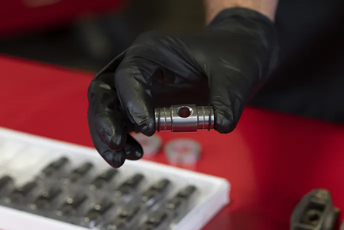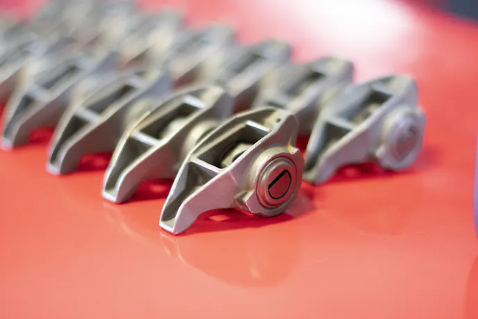 GM’s trunnion rocker assembly design in Gen III (LS1) engines and their offset counterpart used in Gen IV (LS3) engines share a ductile iron 1.7:1 rocker arm, with a flat tip, which makes contact with its respective valve stem. The arm has two sets of needle bearings — one on each side — which are pressed into the body of the arm itself. Between the bearings is a trunnion shaft, which ultimately holds the rocker assembly in place, and serves as the fulcrum.