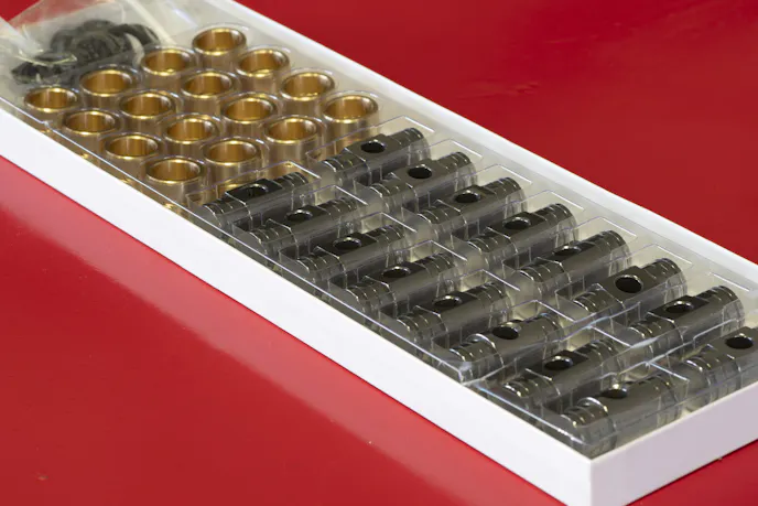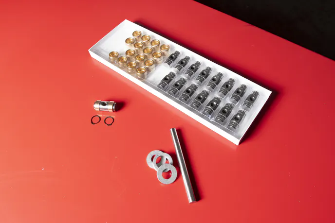 In this kit (P/N: 07-13702-16) there are 32 heavy-duty bronze bushings, 16 trunnion shafts, and 32 snap rings (circlips). The entire kit retails for around $150. A 4-piece tool kit made specifically for this conversion can be purchased from Engine Pro (P/N: LSTINST-KIT). This tool kit will make the installation very smooth, though a socket and hammer can also get the job done if you’re extremely careful.
