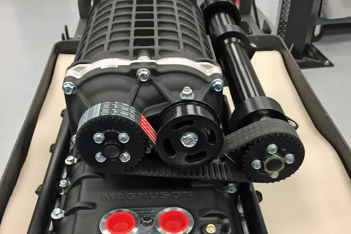 “The Magnuson blower has a standard Eaton 2650 rotor set. Nothing has been massaged on it or changed,” says Wysocki. “We do drive it from the rear with a jackshaft arrangement, whereas a standard production unit is driven off the front, but the bearings and rotors are right off the production line.”