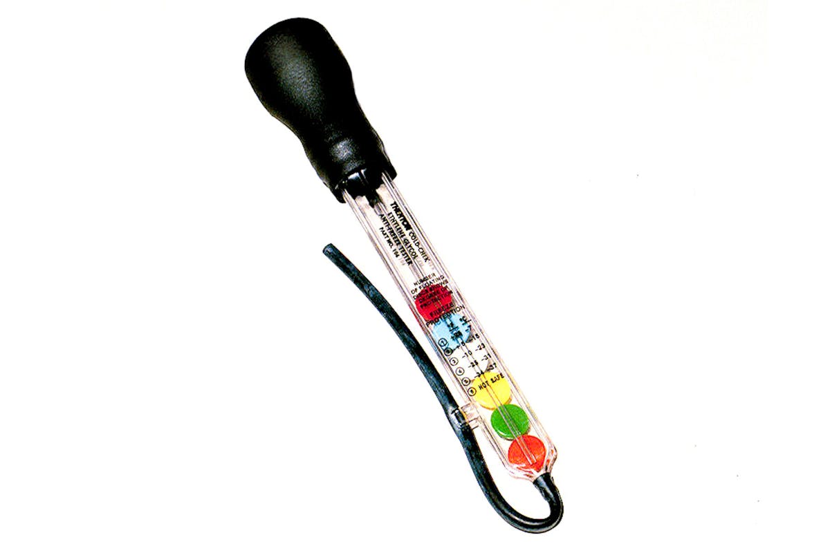 “For most mild applications, observing the fourth, white disc floating in the test unit confirms anti-freeze properties down to -15°F. If your environment warrants a colder mixture, just follow the directions after adding additional coolant to the mixture,” Harder explains. “If the orange, sixth disc is floating, you either have too much coolant in the mixture, or you need to inspect for other issues.”