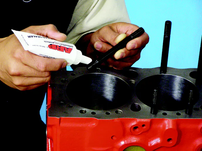 It’s common practice for head bolts (or studs) to be threaded into a wet water jacket. This requires the fastener to be properly sealed to prevent any leakage. ARP makes its own excellent sealer, and by following the instructions during installation, it’s proven to be an effective leak preventative.