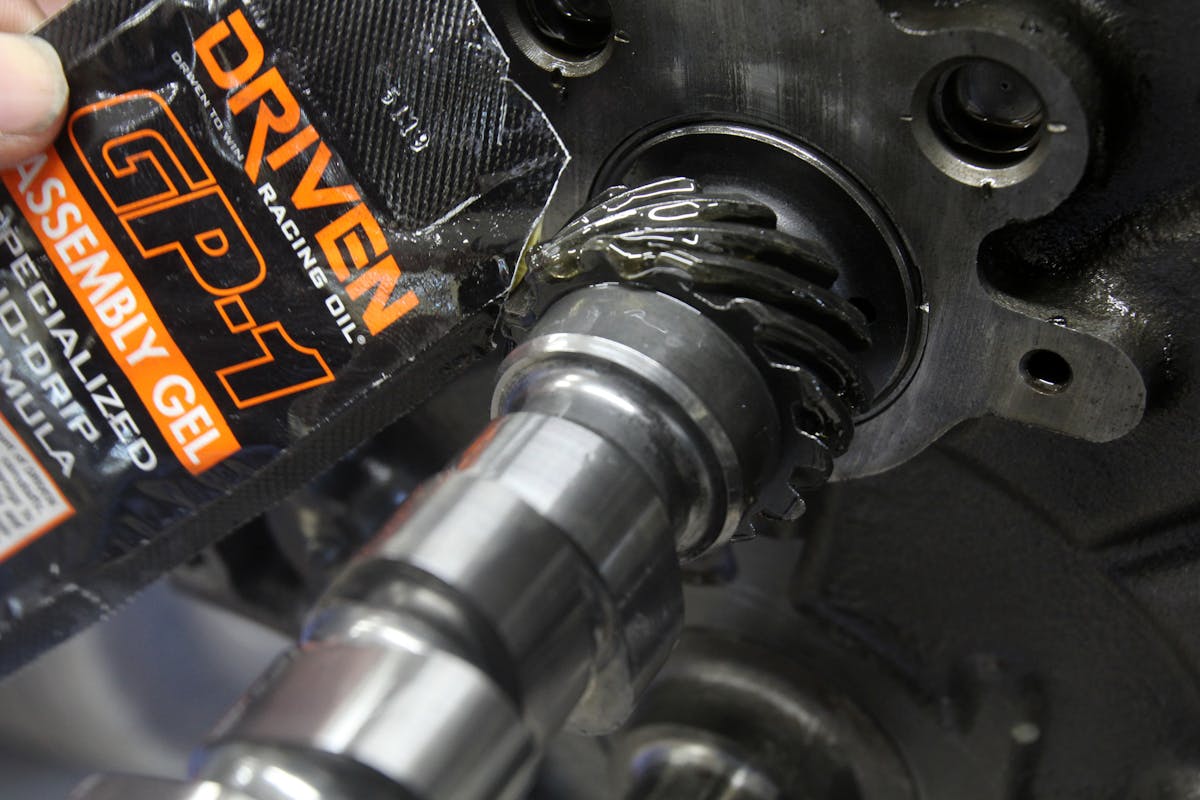 With the new parts in hand, we slid the custom COMP cam in place along with the factory limiter plate and a new timing set. We then verified the position of the cam with our degree wheel just to make sure it was installed properly. We also liberally lubed the distributor drive gear on the cam along with all the lobes and journals. With the engine re-assembled, we dropped it back into place and re-fired it using a crankcase full of Driven SAE30 break-in oil to ensure the cam would be happy during break-in. Within a day we had the engine running.