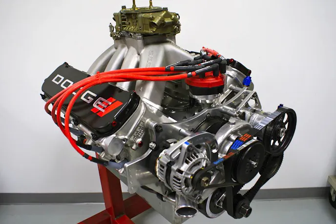 Here’s the Dodge R6/P8 that replaced the R5/P7 in NASCAR racing. Note that the distributor is moved to the front and that the engine is “right-bank leading,” compared to the “left-bank leading” architecture of the R5/P7. Other improvements include improved coolant flow, redesigned oiling and lighter weight. The R6 block also has 4.500-inch bore spacing while the R5 is at 4.460-inch. The R6/P8 made its racing debut in 2008.