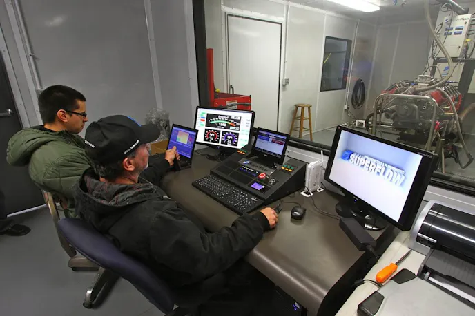 Schelley needed only a short afternoon on the new SuperFlow Powermark dyno at Pfaff Engines in Huntington Beach, California, to sort through the tuning options and set a strong baseline for the engine’s new owner — an international drift champion with multiple titles. This client picked up a Dodge Viper that was damaged in the tsunami and decided it would be “real cool” for the Japanese market to replace the water-logged V10 with a NASCAR V8 engine. He then purchased a pair of engines out of Evernham Motorsports.