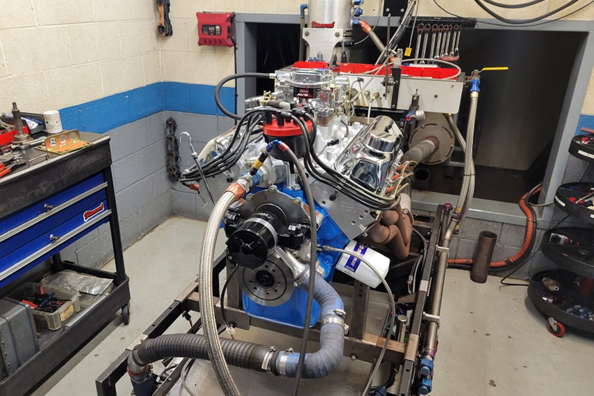 As in the previous test, we fitted the 800cfm Edelbrock AVS2, and just like in the Windsor test, the carb’s out-of-the-box calibration was solid. It performed well throughout the RPM range, quelling your author’s original concerns about the AVS line of carbs. A set of Cleveland-pattern long-tube dyno headers, very similar to those used in the Windsor, were bolted to the heads to get the spent gasses out efficiently.