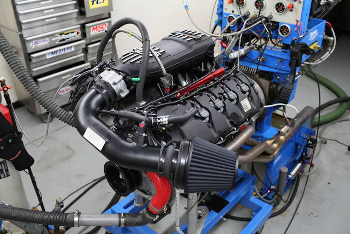 For the induction side of the motor we had tested a variety of intake manifolds but settled with the middle ground BOSS 302 for this test.