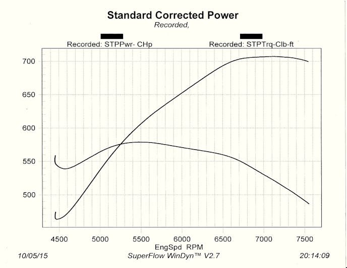 After assembly the engine was dressed out and taken to Scranton Racing Development in Land O’Lakes, Florida for dyno testing on its Superflow 902 engine dynamometer. With pre-test predictions in the 650 horsepower range, once on the dyno the engine exceeded expectations. After the engine break in procedure some initial pulls were made to ensure proper fuel curve and timing calibrations.