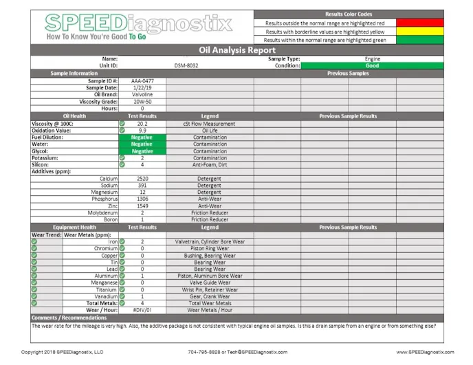 After revealing to Speed that the engine had eaten a bronze distributor gear while racing through Baja, his analysis became more directed. “The copper levels are certainly tied to the excessive wear on the distributor gear(s), and that ties to the iron wear levels as well. The main takeaway is the amount of wear caused by the sand/dirt, which shows up as silicon.”