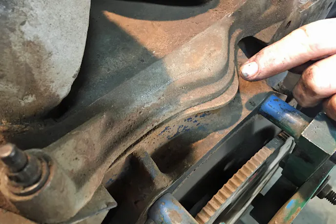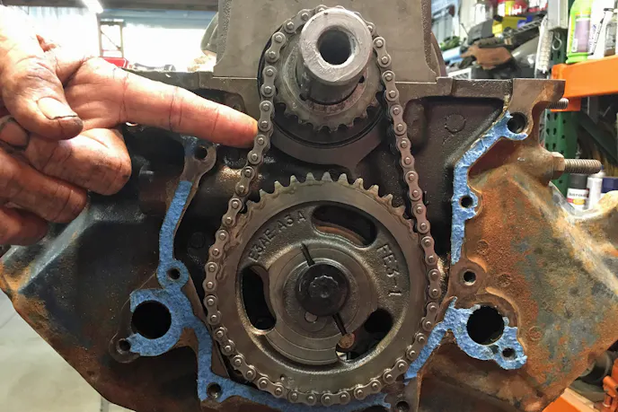 Before removing the crankshaft and camshaft, the timing chain was visually inspected for wear and stretch. “As expected, the chain hasn’t stretched too much, but by no means is it new,” says Steve. The chain was treated as a consumable, and a replacement was added to the growing list of parts needed.