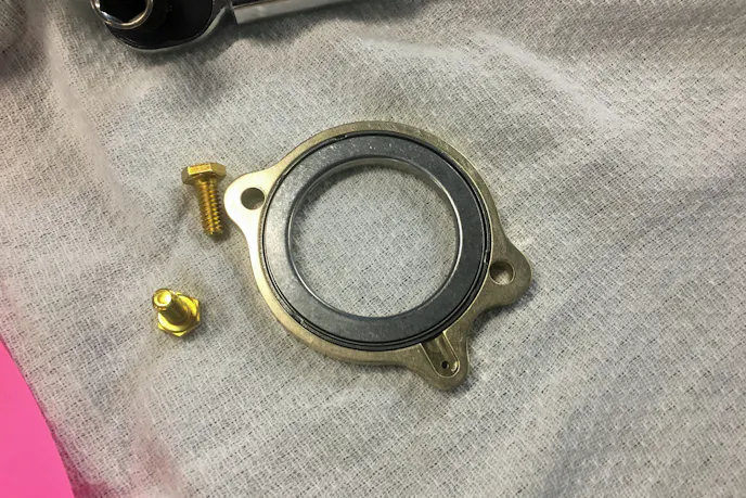 Steve took a few minutes with a Sherlock Holmes-style magnifying glass to look over all the bearing surfaces. “The bearings did what they were supposed to do: capture the bronze that would otherwise find its way into other parts of the rotating assembly,” he concluded.