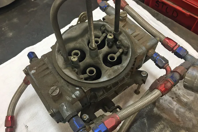 Starting from the top-down, the carb was externally inspected. Significant sand and dirt was found to have passed by the filter assembly and worked its way down into the intake manifold. Not a good start, but considering the engine daw mid-race air filter changes, it’s possible this is a result of those activities.
