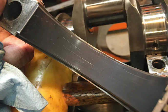 Next, SWRE went to work cleaning up the rotating assembly used in the rebuild. Elbow grease was the name of the game on most parts. Due to strict environmental laws, caustic solvents are a thing of the past. Those solvents were a huge time-saver when it came to clean up. Lately, Steve uses a heated sonic tank filled with kerosene to start the cleaning process on parts.