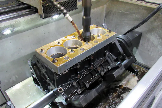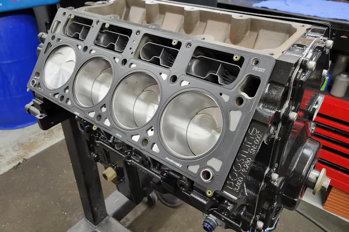 Not only is it the easy button for us to just order a ready-to-go short block, but it also makes this whole $8,000 budget thing a possibility for anyone to replicate in their garage without having to be an engine builder. Starting with a Gen-III 5.3L block, the deck is flattened and squared up for a true zero deck, the mains are all align-honed, the cylinders are opened up, and then torque-plate honed to finish at 3.800 inches.