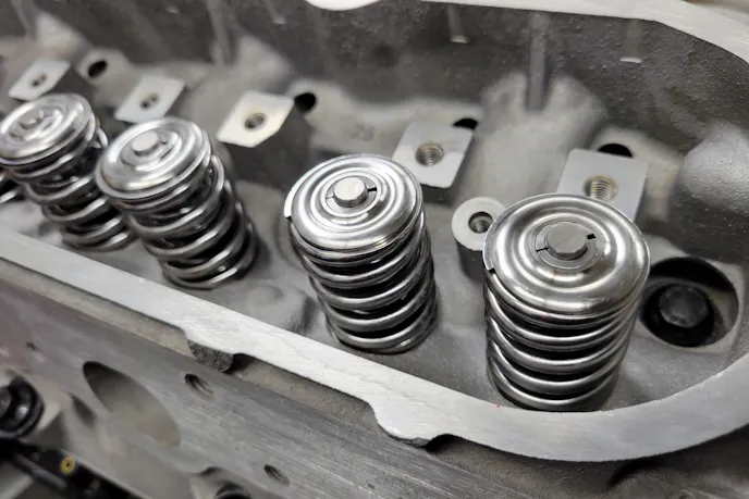 To control those valves, obviously, the stock valve springs go right in the garbage. We used one of Summit’s Dual Valve Spring Upgrade Kits, which comes with 400 lb/in dual springs rated for up to .600 inch of lift. The kit also comes with steel, single-groove 7-degree locks and retainers, valve seals, and spring locators. The all-in-one kit makes it easy to upgrade or outfit a set of bare core heads.