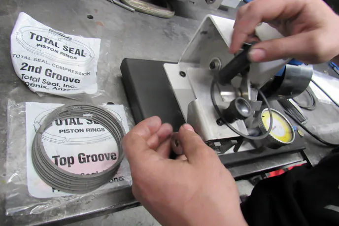 The flat top piston (well, almost flat top, they have 2.9cc worth of valve reliefs in them) is forged from 4032 aluminum and has 1.5mm, 1.5mm, and 3.0mm ring grooves machined into them. They feature an anti-wear skirt coating and come with a .180-inch wall-thickness wrist pin that will handle what we’re planning to throw at it. To seal combustion, a set of gas-ported piston rings were used. Between the gas ports and nitride coating, the seal will be improved while friction will be reduced.