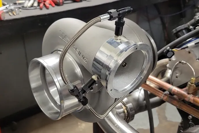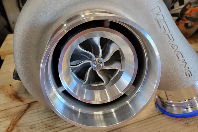 With the long-block all sorted out, we moved on to the pressurized parts of the build. Anyone who has recently shopped for a turbocharger, knows that the sky is the limit on how much you can spend. However, there are budget-friendly options that don’t require the use of eBay. We drove down to VS Racing’s shop just outside of Ft. Worth and picked up an 80mm VSR-series turbocharger. Fitted with the Gen-2 billet compressor wheel and a divided 1.32 A/R T6 exhaust housing, the large-frame turbocharger will supply all the air we need for our goals.