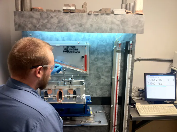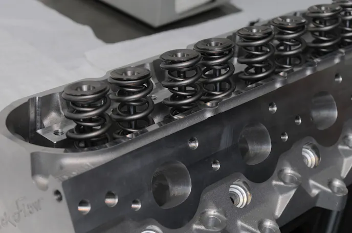 Once ported and flow-tested, the TFS heads received copper beryllium seats and Ferrea titanium valves (2.100-inch intake and 1.600-inch exhaust). Flow testing results are listed in the table below.