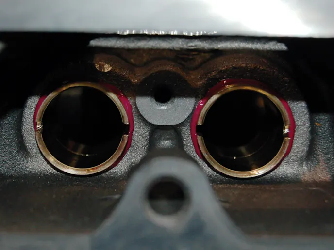 Next was machining out the lifter bores to 1.060-inches for the keyway lifter bushings. Jesel mechanical roller lifters don’t require a dogbone or tie bars for alignment. With the bores cut, the lifter bushings were pressed into the bores.
