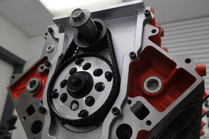 Completing the valvetrain is a Jesel belt drive (part no. 31045-3489) for the cam-to-crank connection. The beauty of a belt drive is twofold: it absorbs harmonics that could hit the cam, and it’s easy to change the cam timing—up to 20 degrees in five minutes.