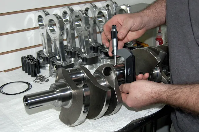 Virginia Speed started with a Lunati Pro Series 4340 forged steel crankshaft (3.66-inch stroke) and milled an extra keyway to help secure the damper. The ProCharger F-1R supercharger will also be driven off of the crank, which also puts an extreme load on the snout at peak boost, hence the extra key. The Lunati crankshafts are pretty good right out of the box, but a touch of balancing with the other rotating components ensured a smoother running engine with minimal high frequency harmonics.