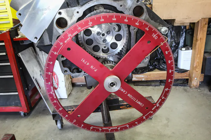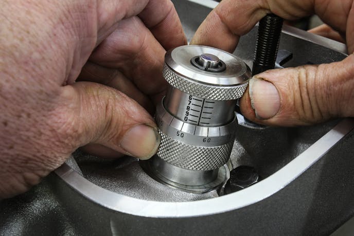You probably should not be building engines if you don’t own a cam degree wheel and the associated pieces. For years we used a small 8-inch diameter wheel, but the much larger professional wheels are far more accurate and easier to use. While those dedicated dial indicator lobe lift tools are handy, they’re not essential. We prefer using old lifters fitted with a dial indicator dimple on top to locate the plunger. These homemade tools work great and cost nothing.
