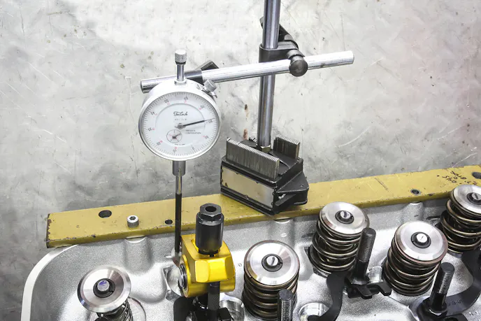 Many enthusiasts don’t think much about the need to assemble cylinder heads but if you prefer to control your own destiny, any good engine builder would rather set his own specs. This will require a tool like a height micrometer. This is a vertical micrometer that fits over the valve guide and measures the distance between the valve spring seat and the bottom of the valve spring retainer. There are other ways to measure this dimension, but height mics are inexpensive and real time-savers.