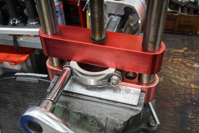We reserve high praise for the prescient engine builder who came up with the idea for the tapered ring compressor. Forget using those clamp style compressors – they are hateful and require a steady hand. Yes, each different bore demands its own size, but using these tools makes installing pistons a joy. In the same vein, rod bolt “chopsticks” that thread over the rod bolt studs help guide the rod in place and protect the crank from scratches.