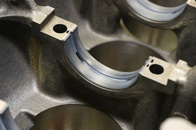 Holding the crank in place is a set of King Bearings MB7039XP XP Series coated main bearings. They are made from a copper lead construction with a nickel plate barrier and a lead/tin/copper babbit overlay over a steel backing. King notes they can maintain a bearing to bearing variance of only +/- .0001-inch. These bearings also feature chamfered oil holes. ARP’s 201-5002 ultra-strong main stud kit ensures that our crank will remain in place when spinning up to 8,000 rpm. We step torqued the mains up to a final value of 60 ft-lbs.